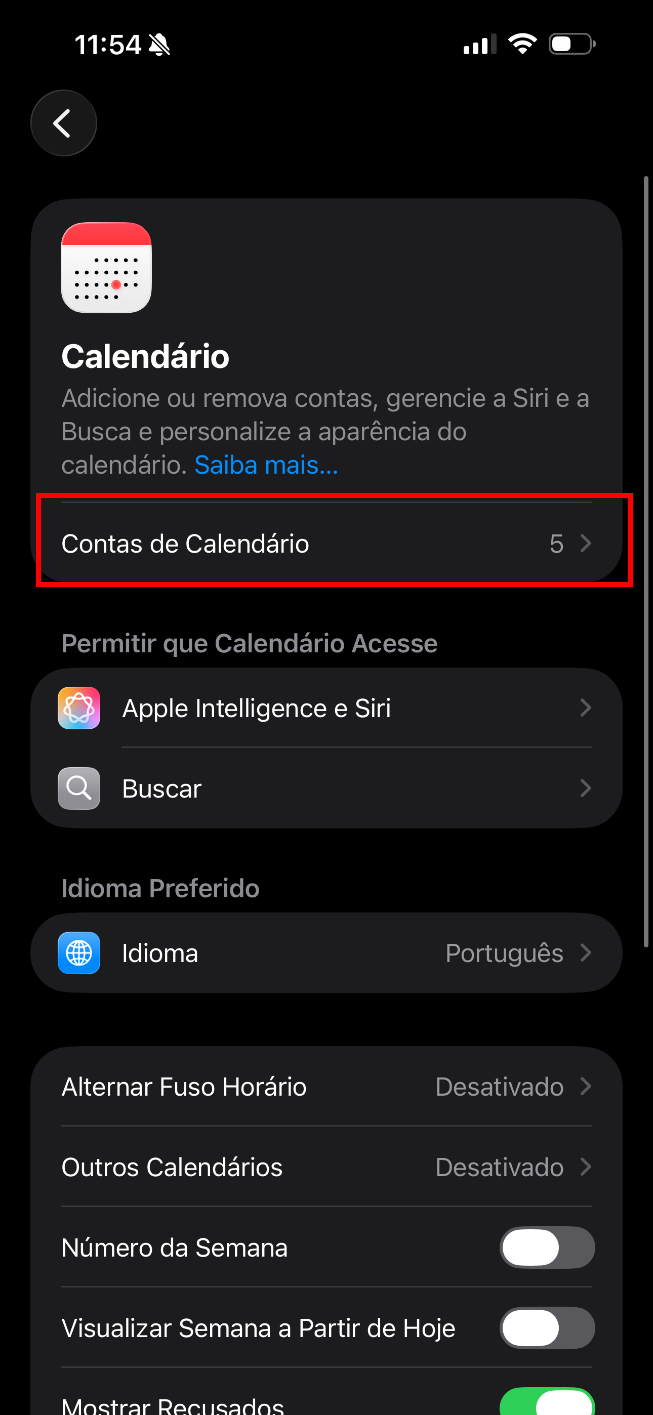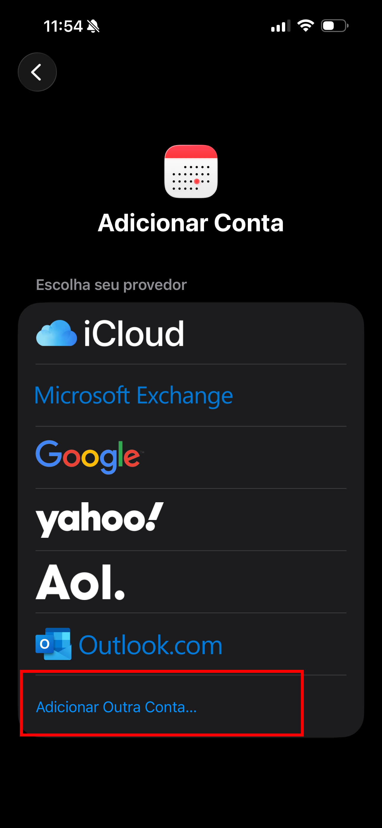 Clique em "Contas de Calendário".