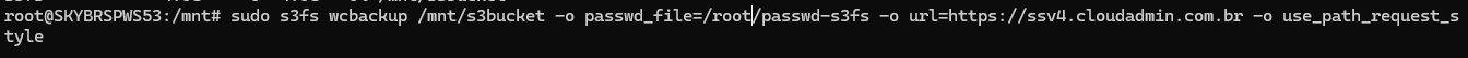 sudo s3fs <BUCKET_NAME> /mnt/s3bucket -o passwd_file=/root/passwd-s3fs -o url=<URL> -o use_path_request_style