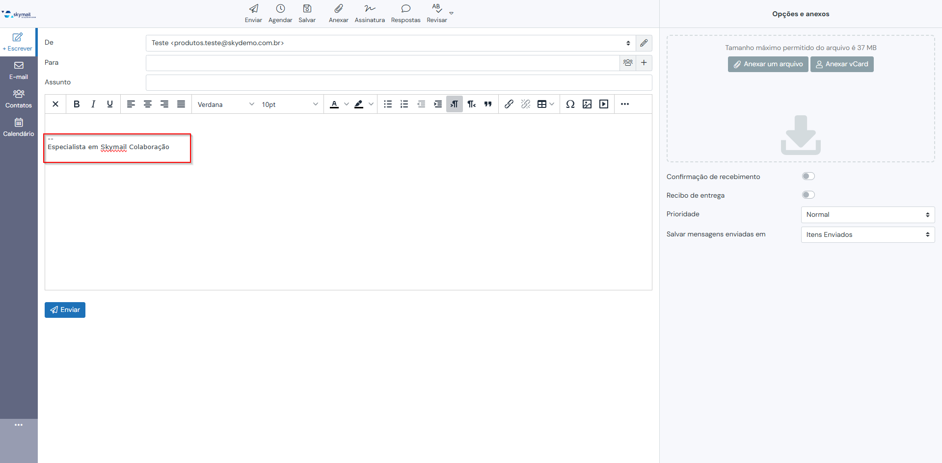 Acesse a caixa postal, e ao enviar um e-mail o conteúdo estará disposto na assinatura das contas vinculadas ao Perfil de produtos.
