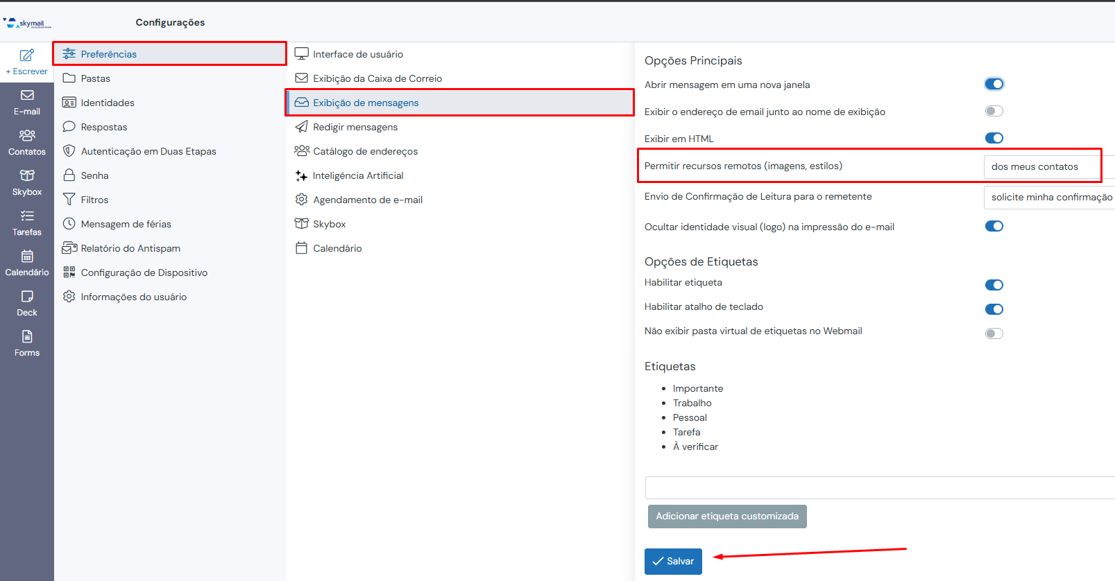Recursos remotos do Skymail