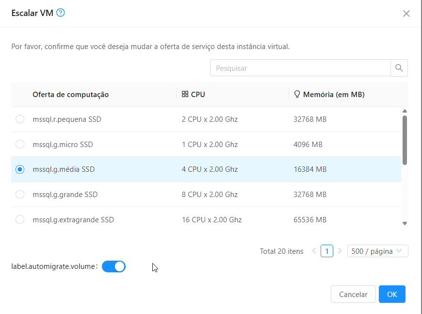 4. Depois clique em Computação>Instâncias, selecione a máquina que deseja alterar a oferta: