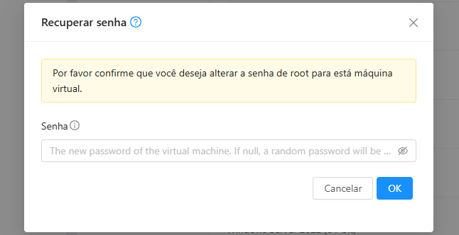Como alterar a senha da Máquina Virtual pelo Painel de Controle