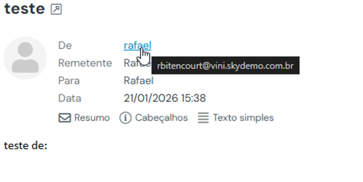 O e-mail chegará ao destinatário exibindo o endereço configurado no campo De:.