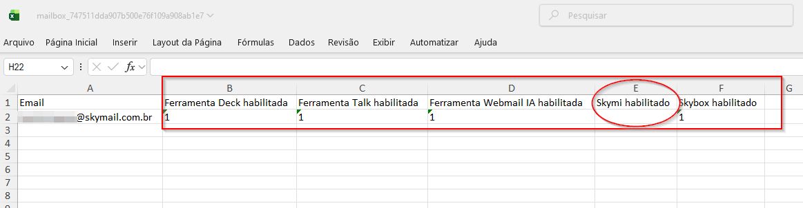 Conforme demonstrado na imagem, os aplicativos ativos são representados pelo valor “1” na célula correspondente. Já os aplicativos inativos não apresentam valor preenchido, permanecendo com a célula em branco.