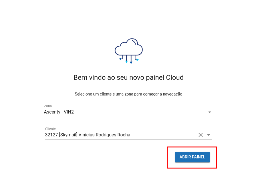 Entre no painel de Cloud