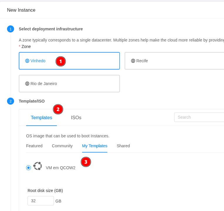 Com o template no estado Ready, prossiga com a criação da VM: