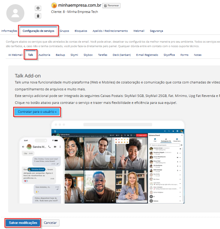 Clique em salvar na parte inferior e o serviço vai aparecer nos webmails dos usuários. Veja como criar um bate papo.