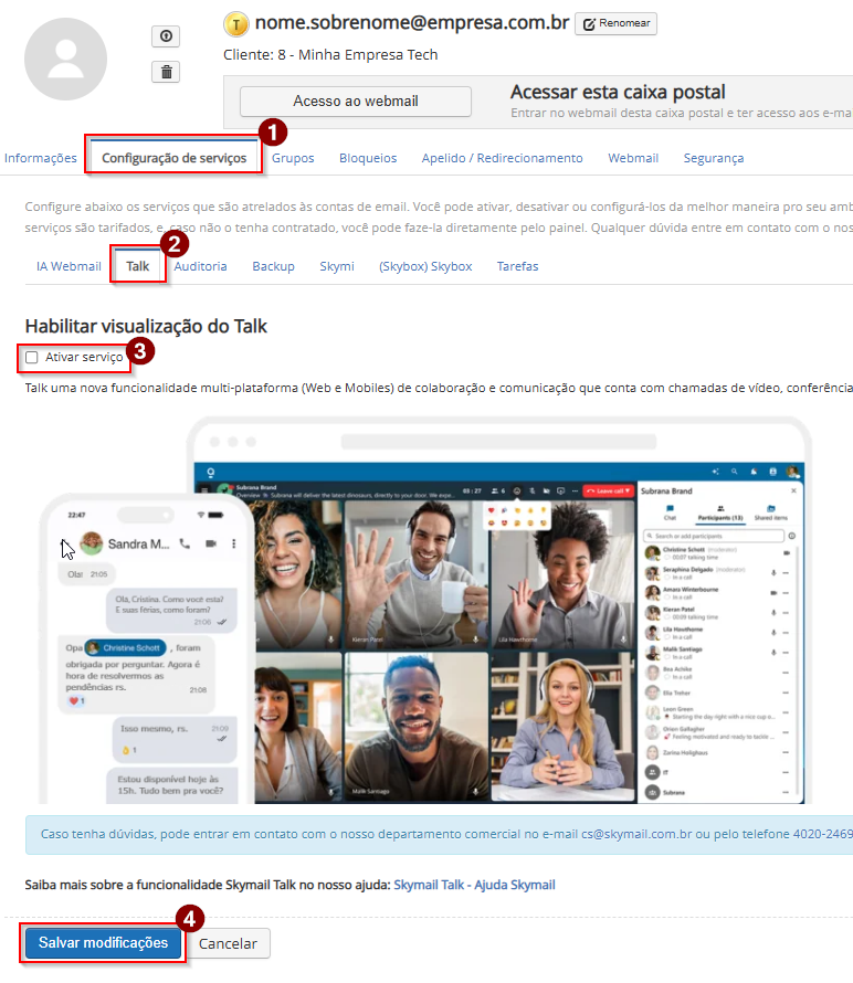 Nesse tutorial você vai ativar o Skymail Talk individual.