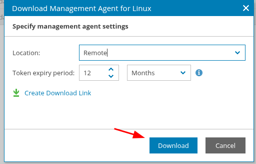 Clique no botão Download Management Agent na parte superior da tela e selecione Linux: